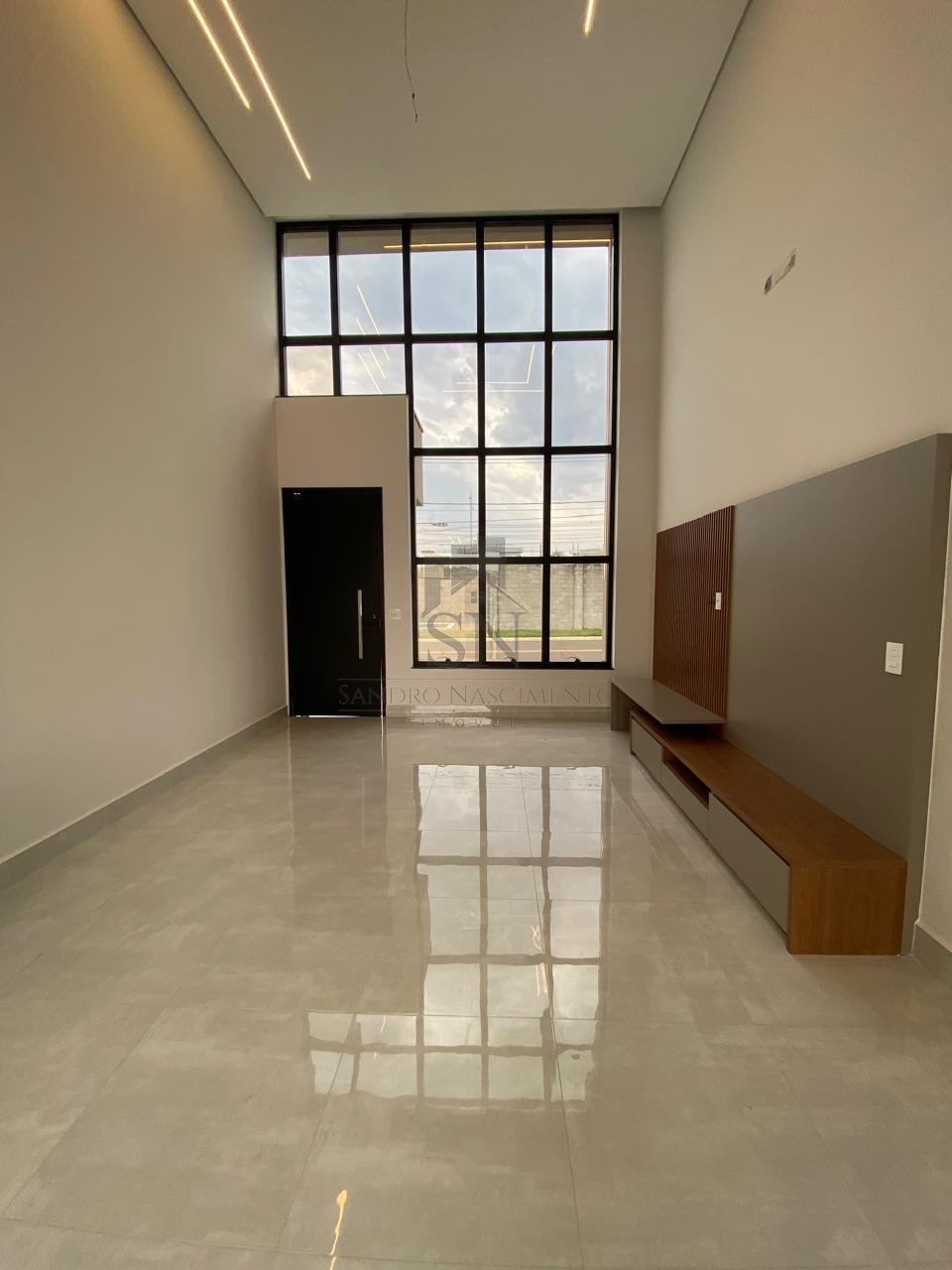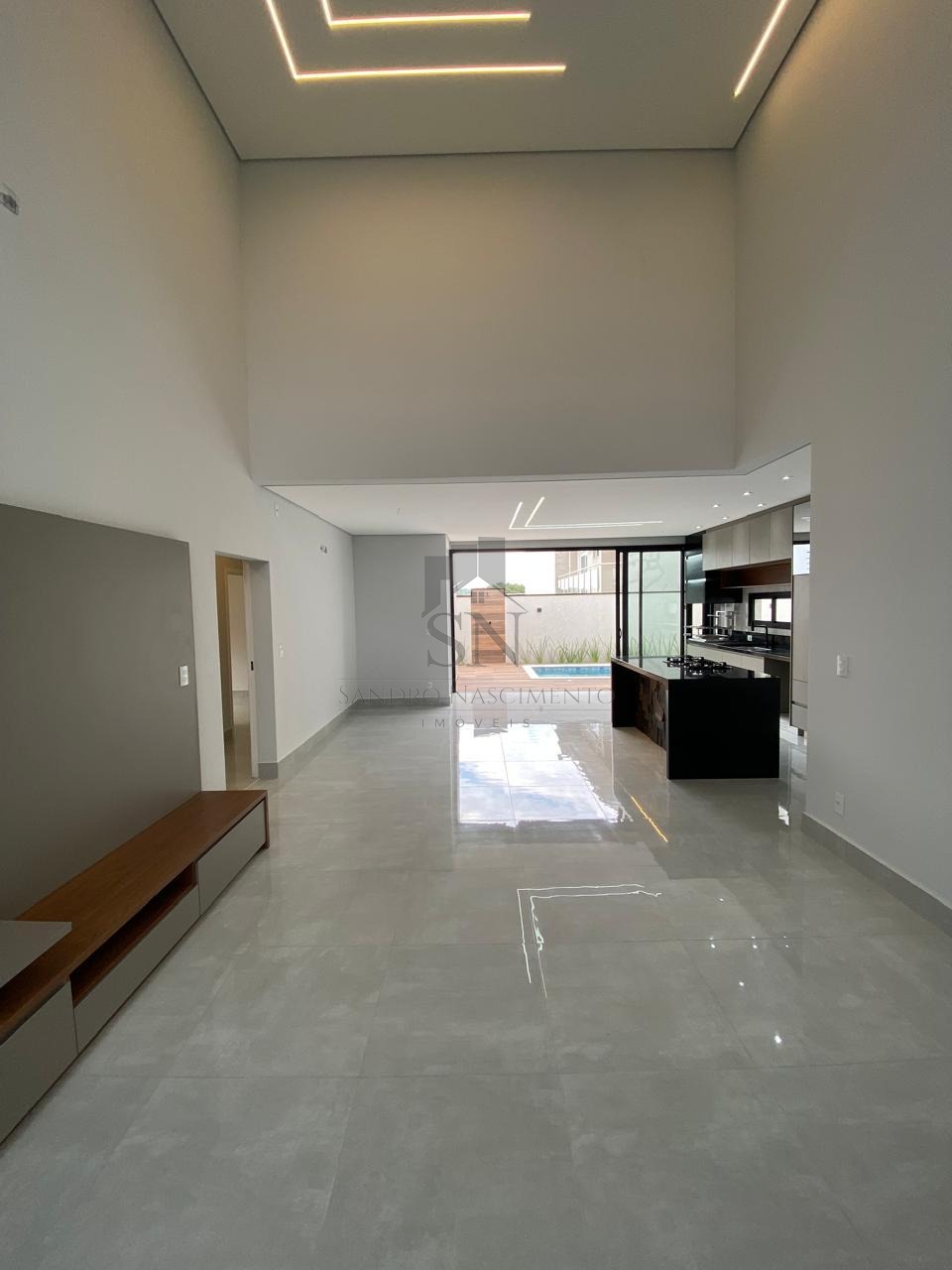 • Sala com pé direito alto integrada à sala de jantar